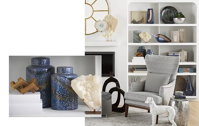 Sophisticated Serenity is a cool-toned classic. High-gloss finishes, clean lines and elements of blue, grey, silver and gold draw out a calm mood that resonates with the surrounding space.