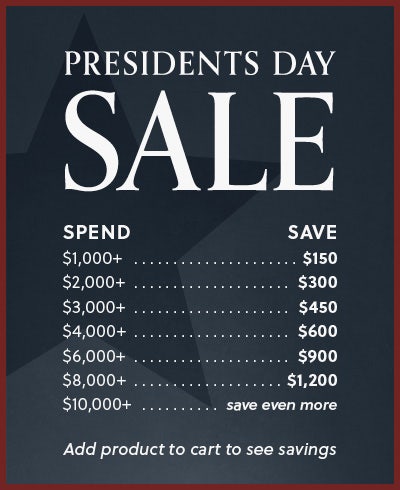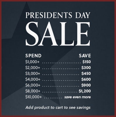 Graphic that says "Presidents Day Sale" with savings chart